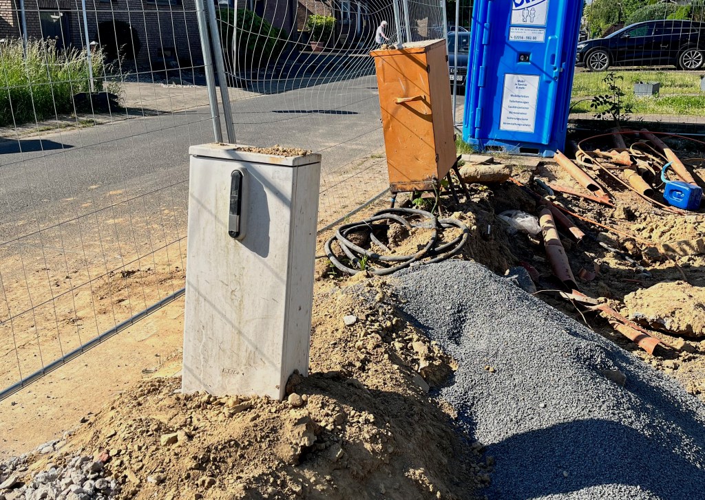 Ich versuchte währenddessen, den Baustrom online bei Westnetz zu beantragen. Aber das Onlineportal meinte aufgrund eines IT Fehlers, unsere Straße läge angeblich nicht in ihrem Zuständigkeitsgebiet. Wann der Fehler behoben werden würde, konnte uns die Hotline nicht sagen. Und einen anderen Weg als über das Portal gibt es nicht. Ich bin zu RWE persönlich in die Collingstr. gefahren. Auch sie konnten mir nicht weiterhelfen.